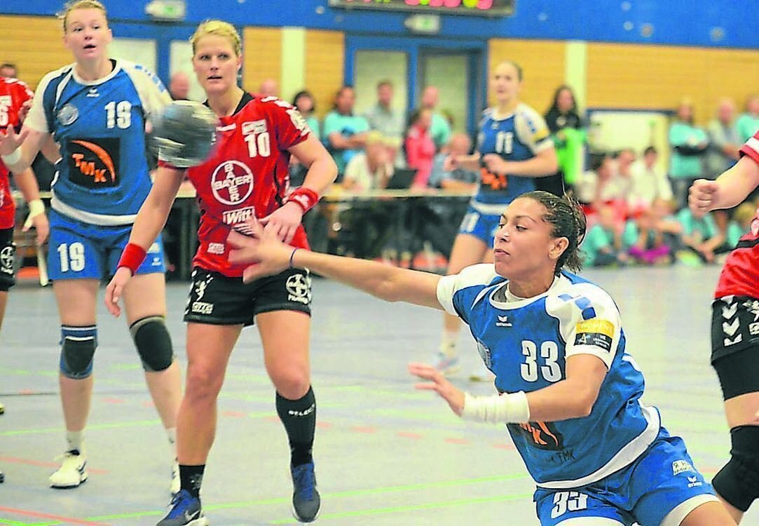 Tor für Wolgograd im Finale: Jaqueline Anastacio (rechts) entwischt den Leverkusenerinnen. GEA-FOTO: PACHER