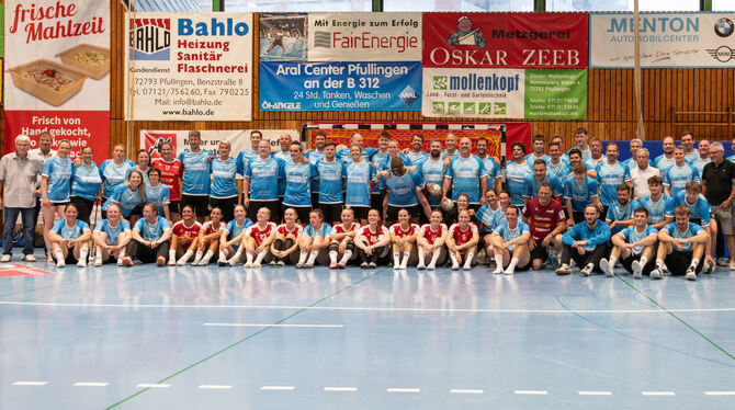 Die Mannschaften beim Legendenspiel in Pfullingen