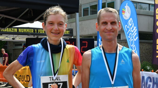 LICHTENSTEIN. Insgesamt 400 Teilnehmer wurden beim Lichtenstein-Trail gezählt, bei dem sich in drei der vier Wettbewerbe Lauf-Asse der LAV Stadtwerke Tübingen in die Siegerliste eintrugen. Als Ausrichter fungierte Trailrunning Lichtenstein. Beim Halbmarathon, wo 300 Läufer die anspruchsvolle Strecke in Angriff nahmen, setzten sich die Vorjahressieger Sascha Chwalek (LAV) in starken 1:39 Stunden und Katrin Köngeter (LAV) in 1:56 Stunden erneut souverän durch. Das Podium der Männer komplettierten Martin Leo Reinhard auf dem zweiten Platz und Gabriel Kammerer als Dritter. Bei den Frauen liefen Anja Westphal (MTV Stuttgart Triathlon) und Svenja Erdmann (Rottenburg) am Neckar) hinter Köngeter ins Ziel.