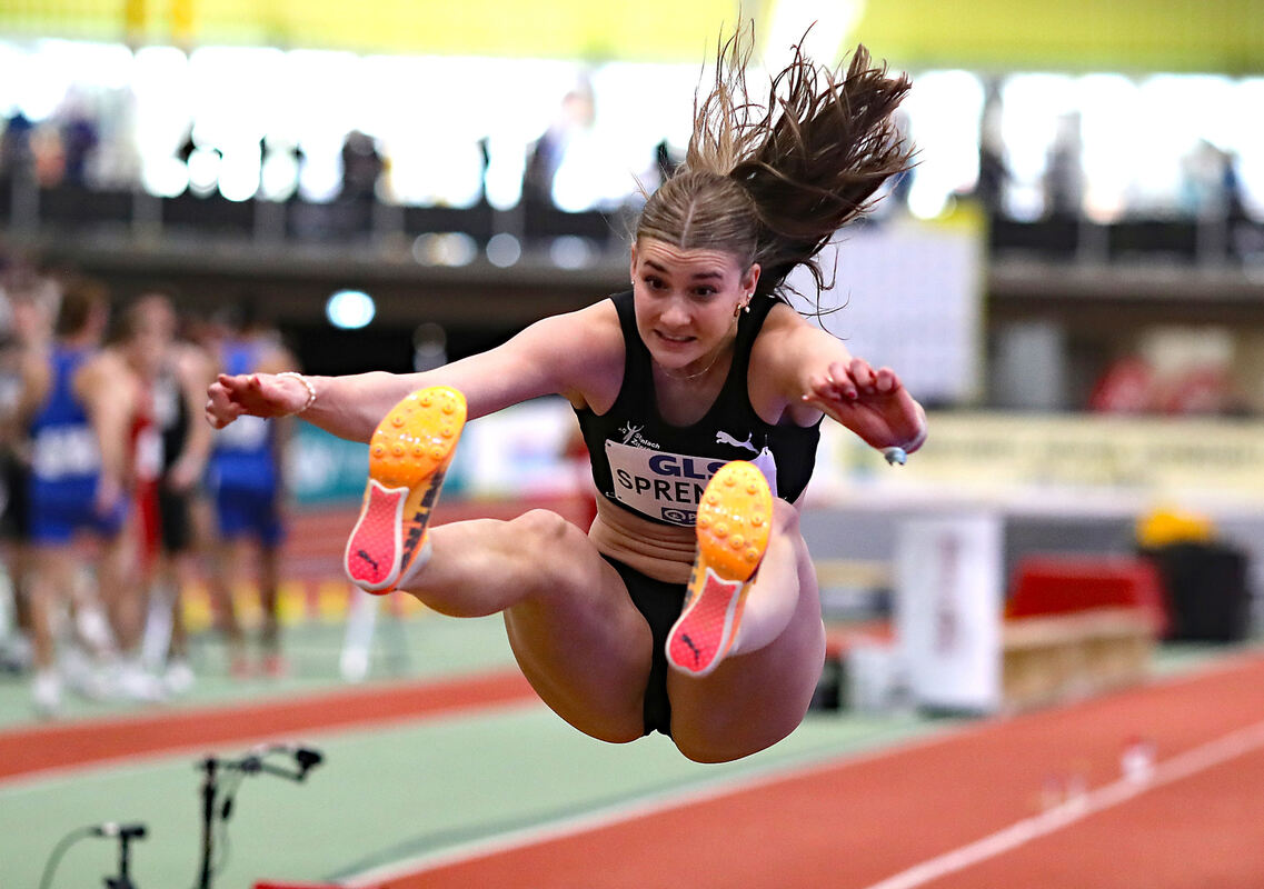 Sandrina Sprengel von der LG Steinlach-Zollern springt bei den deutschen Hallenmeisterschaften auf Platz drei.