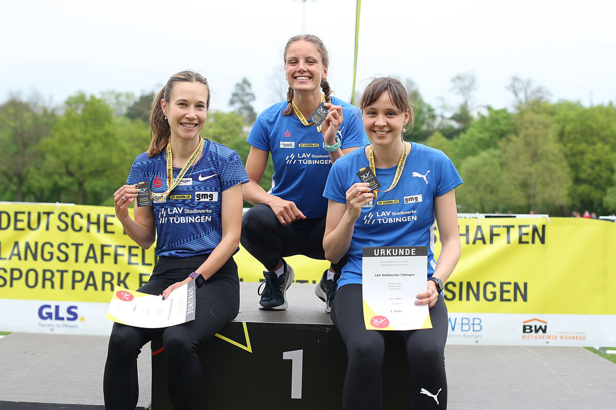 Bei den Frauen lief Carolin Führen als Startläuferin couragiert an. Sie übergab an die Dritte der Hallen-DM über 800 Meter, Laura Wilhelm. Die attackierte in der zweiten Runde die führende Staffel der Startgemeinschaft Karben-Königstein-Groß Gerau. Als sie das Staffelholz an die Schlussläuferin Hanna Klein übergab, lag die LAV bereits in Führung. Die Konkurrentinnen sahen Klein dann nur noch von hinten. Auf der zweiten Runde konnte die Hallen-Europameisterin über 3.000 Meter den Vorsprung weiter ausbauen. Das Tübinger Trio siegte in 6:30,66 Minuten vor dem ASV Köln (6:33,06) und Karben-Königstein-Groß Gerau (6:33,09).