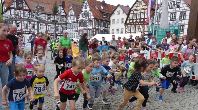 BAD URACH. Zum 27. Mal haben die Abteilungen Turnen und Leichtathletik des TSV Urach 1847 den Stadtlauf in der Kurstadt ausgerichtet - und damit wieder großen Erfolg gehabt. 600 Teilnehmer hatten sich fürs Laufevent am Samstag angemeldet und fast 1.000 Zuschauer waren schon bei den ersten Starts am Nachmittag dabei. »Alles in allem ein wunderbarer Tag, so viel los war zuletzt 2018, mit so vielen Teilnehmern, Publikum und dem tollen Wetter, und der prima Stimmung«, beschreibt Sebastian Hauenstein zusammenfassend den sportlichen Tag, den er seit zehn Jahren als Moderator erlebt.