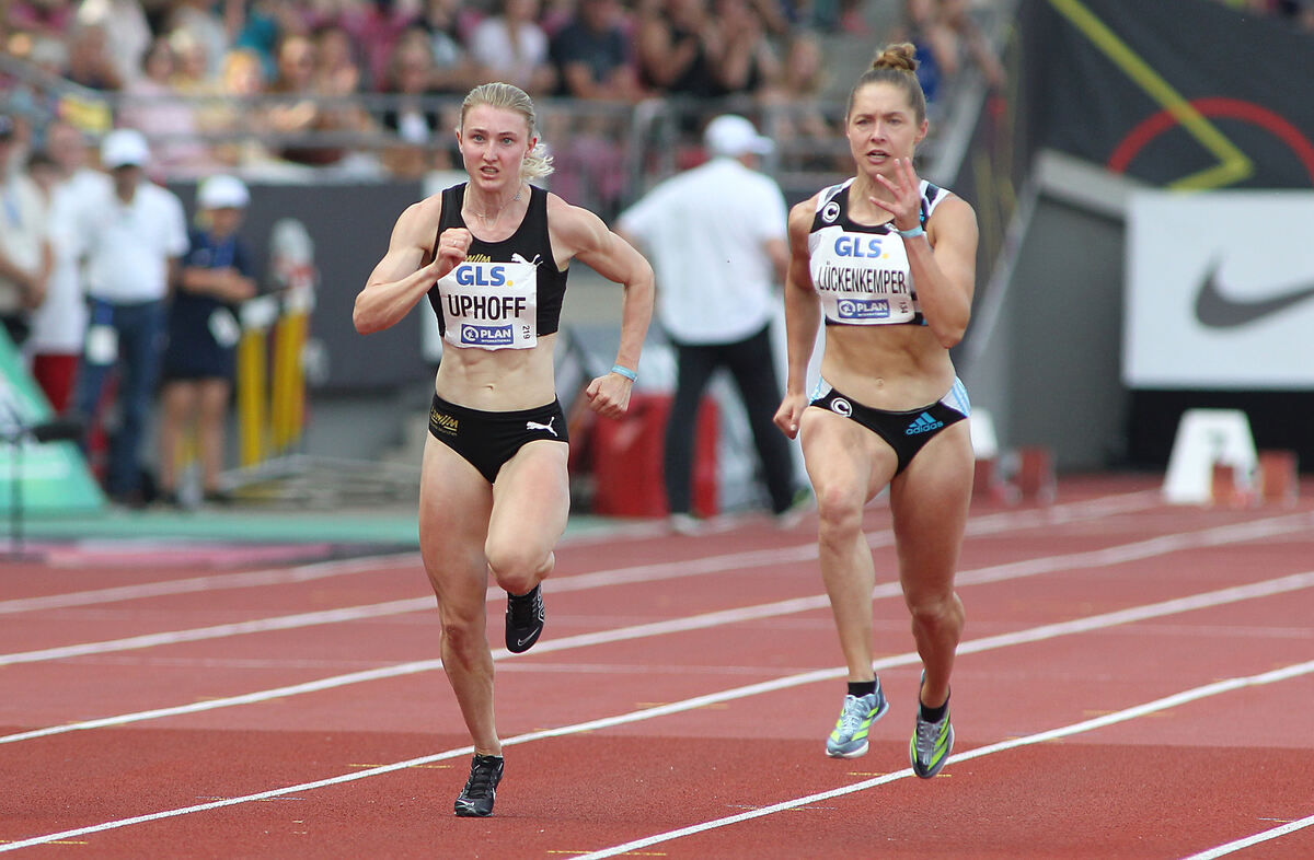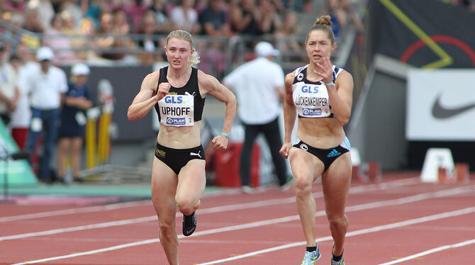 Denise Uphoff aus Oferdingen (links) im Duell mit Sprint-Star Gina Lückenkemper.