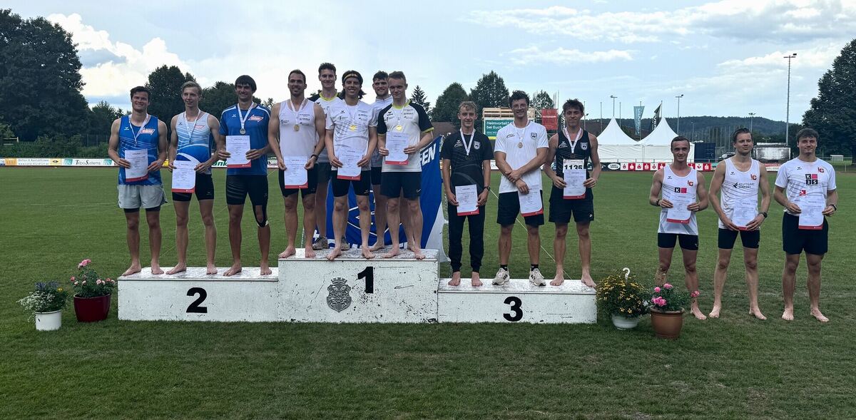WEINGARTEN. Großer Erfolg für die Zehnkämpfer der LG Steinlach-Zollern: Bei den baden-württembergischen Mehrkampfmeisterschaften in Weingarten verteidigte die Mannschaft erfolgreich den Titel. Bereits zum vierten Mal in Serie geht Gold damit an die LG-Leichtathleten. Christoph Ewinger, Joshua Kommer und Finn Schulz waren die Erfolgsgaranten.