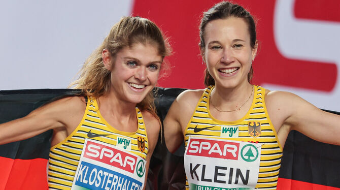 ISTANBUL. 100 Meter vor dem Ziel hatte Hanna Klein genug vom Hinterherlaufen. Die Leichtathletin aus Tübingen zog an Konstanze Klosterhalfen vorbei, verteidigte ihren Vorsprung bis ins Ziel und darf sich nun durchaus überraschend Hallen-Europameisterin über 3.000 Meter nennen. »Ich bin überwältigt. Ich freue mich, dass wir als Team so gut performt haben. Gold und Silber – mehr kann man nicht haben«, sagte die für die LAV Stadtwerke Tübingen startende Klein. Ihre Taktik sei voll aufgegangen. Als Zweite der Meldeliste wollte sie ihre »Medaillenchancen verteidigen. Dass es jetzt Gold geworden ist, ist umso geiler«.