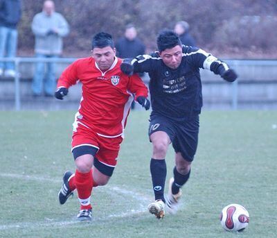 In Lauerstellung: Der SSV Reutlingen um Volkan Bezen (links) ist dank des 3:0-Sieges gegen die SF Reutlingen Tabellendritter. Rechts im Bild: SF-Kicker Hakan Güney.