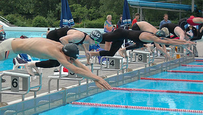 Christoph Engel (links, Bahn 6) vom Ausrichter SSG Reutlingen / Tübingen triumphierte beim Achalm-Cup über 100 Meter Schmetterling.