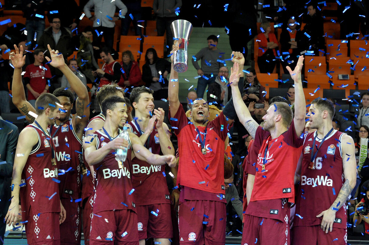 Münchens Spieler feiern nach einer dramatischen Schlussphase den Pokalsieg. Alex King reckt die Trophäe in die Höhe. FOTO: DPA