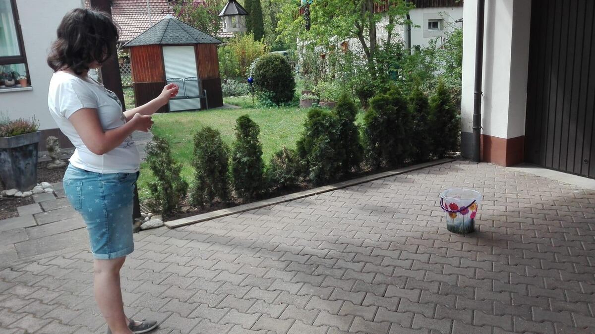 Übers Telefon verbunden beim Zielweitwurf: TSG-Inklusiv-Sportlerin Celina Rilling (links) und ihr Trainer Kim Laudage.