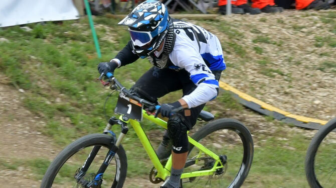 REUTLINGEN. Souverän hat der Reutlinger Weltklasse-Fahrer Benedikt Last den Sieg in der Fourcross-Disziplin beim Mountainbike-Festival auf dem Panzergelände eingefahren. Er wiederholte damit seinen Erfolg von 2018. Zuvor war er bei seinem Heimrennen dreimal sieglos geblieben. Last dominierte das internationale Fahrerfeld von den Qualifikationsläufen bis ins Finale - trotz Verletzung, die er sich im Training am Vormittag bei einem Sturz zugezogen hatte.