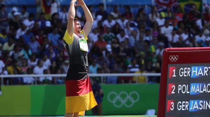 Christoph Harting genießt seinen Olympiasieg. Foto: Michael Kappeler