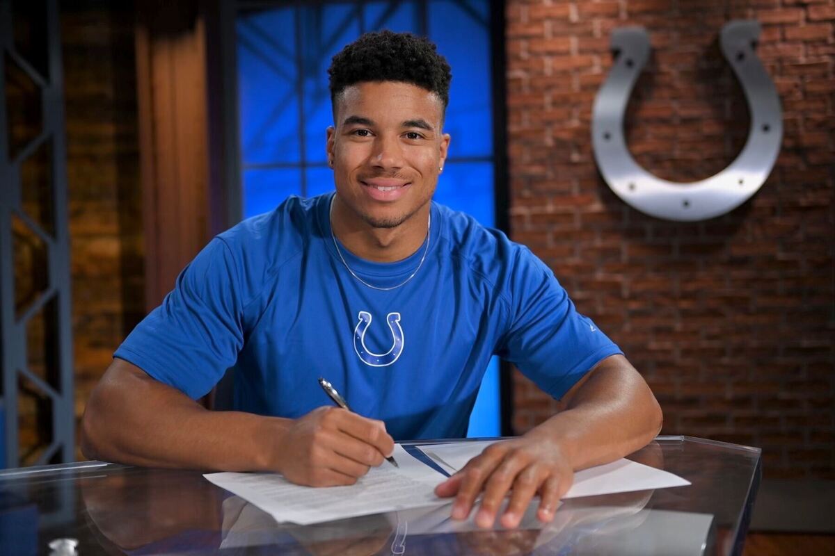 Der größte Moment seiner Karriere: Marcel Dabo unterschreibt 2022 einen Vertrag bei den Indianapolis Colts in der NFL.