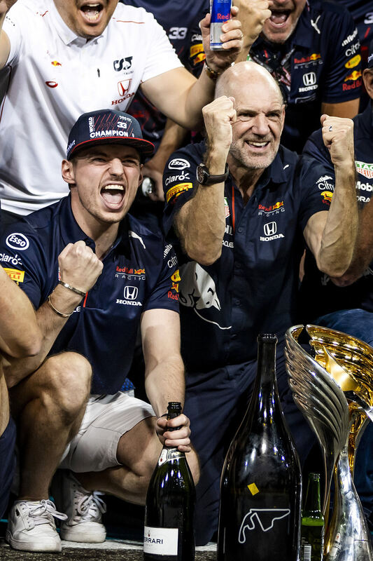 Ohne die Design-Künste von Technik-Chef Adrian Newey (rechts) wäre Max Verstappen (links) nicht dreimaliger Formel-1-Champion geworden.