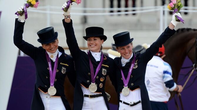 Freuen sich über Silber: (von links) Dorothee Schneider, Kristina Sprehe und Helen Langehanenberg.