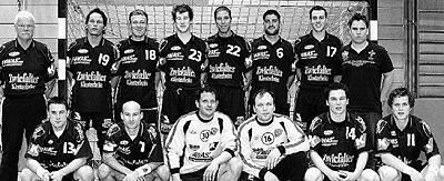 Der TV Neuhausen wurde mit 38:6 Punkten und 732:588 Toren Meister der Württemberg-Liga. Stehend von Links: Trainer Kurt Reusch, Oliver Beiser, Mike Weiblen, Björn Brodbeck, Tobias Högl, Christoph Hauser, Tim Kneule, Jörg Reusch; kniend von links: Markus Breuer, Florian Vollmer, Oliver Radl, Michael Rehkugler, Simon Reich, Markus Geiger.