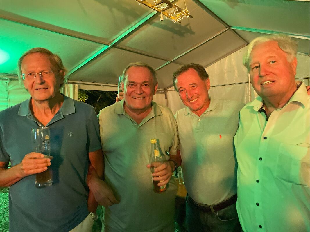 Feiern auf der Eninger Weide ein Wiedersehen: Die ehemaligen Bundesligaspieler (von links) Bernd Kurz, Manfred Grumbach, Peter Stellwag und Rolf Jäger. FOTOS: PRIVAT