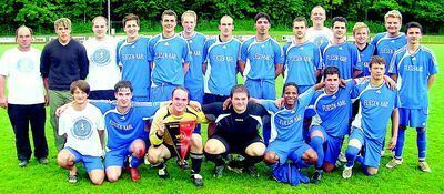 Die Fußballer des TSV Gammertingen sind Meister der Kreisliga B - Donau (3). Hintere Reihe von links: Betreuer Erwin Junker, Ralph Dreher, Benni Gauss, Marco Burkhart, Christoph Fauler, Felix Schosser, Holger Schmid, Antonio Ippolito, Spielertrainer Heinrich David, Abteilungsleiter Helmut Osswald, Spielertrainer Ahmet Nuza, Daniel Oehrle, Dominic Flad, Damir Delic. Vordere Reihe von links: Driton Goxhufi, Simon Brändle, Florian Kraus, Tobias Wahl, Linus Scham, Daniel Bravo und Timo Genkinger.