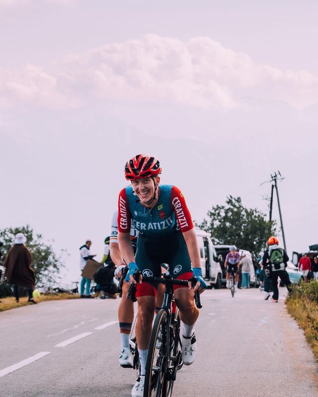 Franziska Brauße bei der gerade beendeten Tour de France der Frauen, wo ihr Team bei einer Etappe beste Mannschaft war.