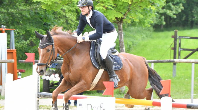 Der Münsinger Philipp Eppinger bricht den Bann und feiert in Wannweil auf der Stute Cansas seinen ersten M-Sieg. FOTO: MEYER