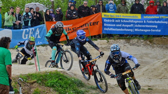 Benedikt Last (vorne) ist auf seiner Heimstrecke in Reutlingen ein ernstzunehmender Gegner für die Fourcross-Jungspunde. FOTO: NIETHAMMER