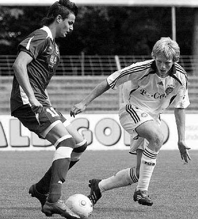 Vergab einen Strafstoß und einige gute Chancen: SSV-Angreifer Alen Lekavski (links), hier im Duell mit dem Münchner Jakob Engelmann.
