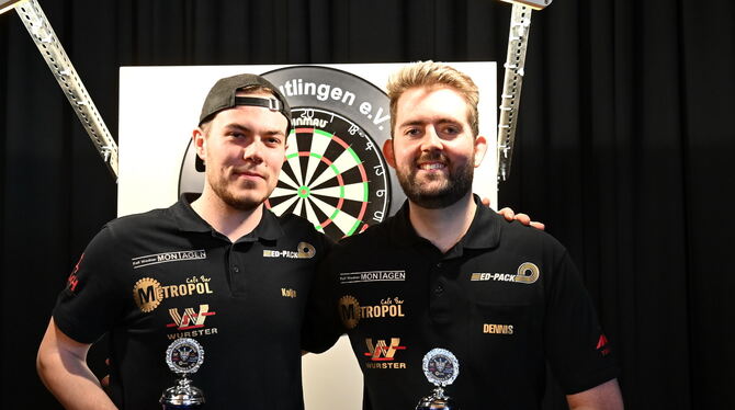 Triumphieren im Doppel: Die Reutlinger Kolja Lins (links) und Dennis Haller.