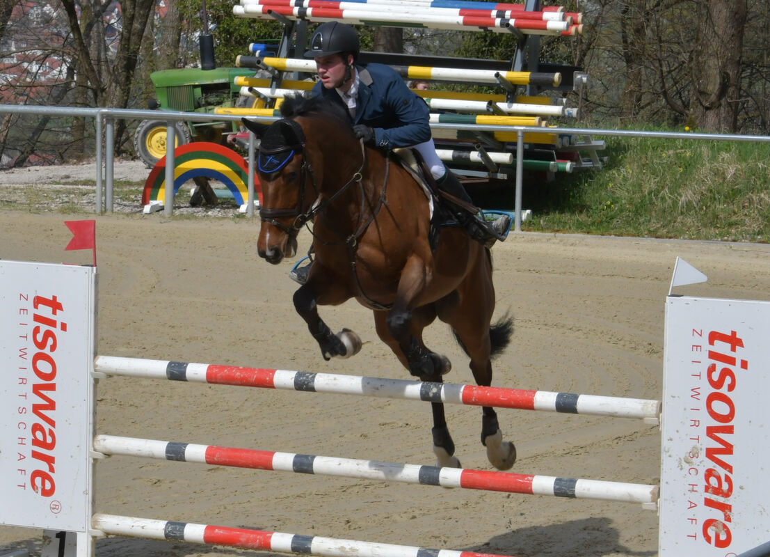 Der Pfullinger Max Hettler (Bild) entschied beim Turnier auf der Anlage am Ahlsberg das M-Springen für sich. Zweiter wurde der Trochtelfinger Fabian Paulus. FOTO: MEYER