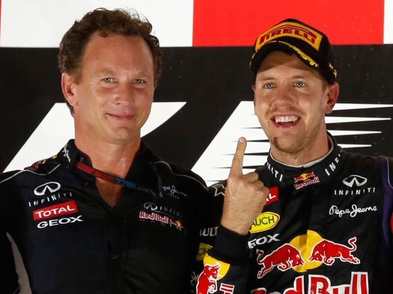 Erfolgreiches Gespann: Red-Bull-Teamchef Christian Horner und Sebastian Vettel. Foto: Rungroj Yongrit