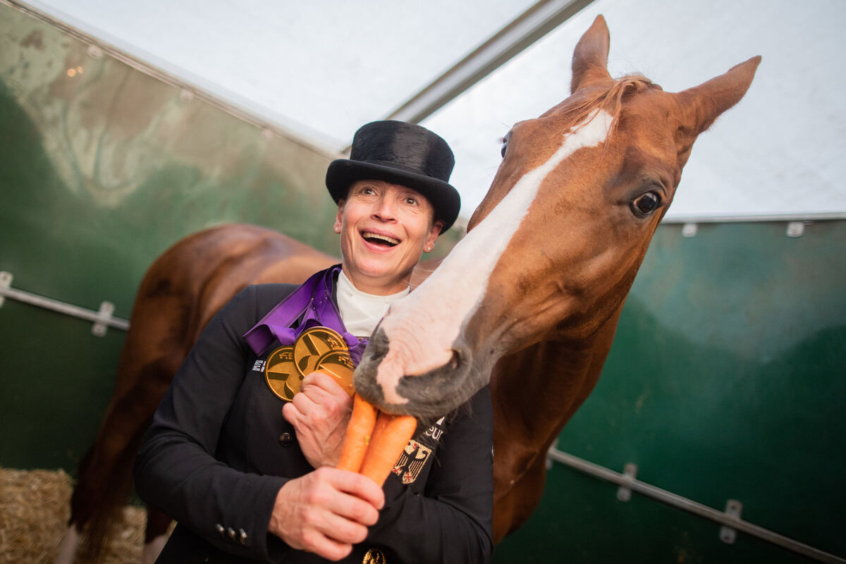 Möhren für Bella Rose nach dem dreifachen EM-Gold: Isabell Werth mit dem besten Pferd, das sie nach eigener Aussage je hatte.