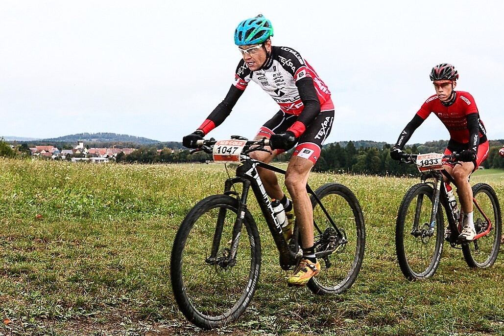 Uwe Hardter (links) aus Münsingen bei der Alb-Gold-Trophy. FOTO: PRIVAT