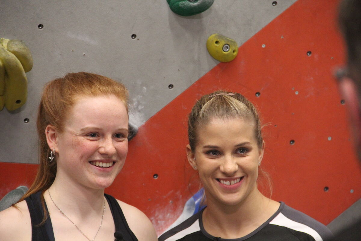Helen Danco (links) und Elisabeth Seitz haben viel Spaß bei den Dreharbeiten.