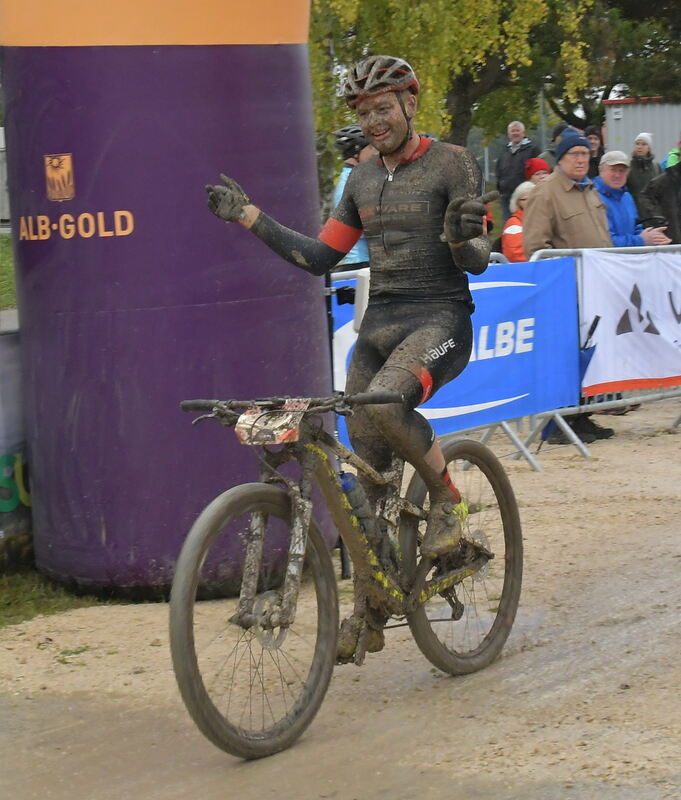 Erschöpft, aber glücklich als Erster im Ziel: Luca Schwarzbauer.Foto: Meyer
