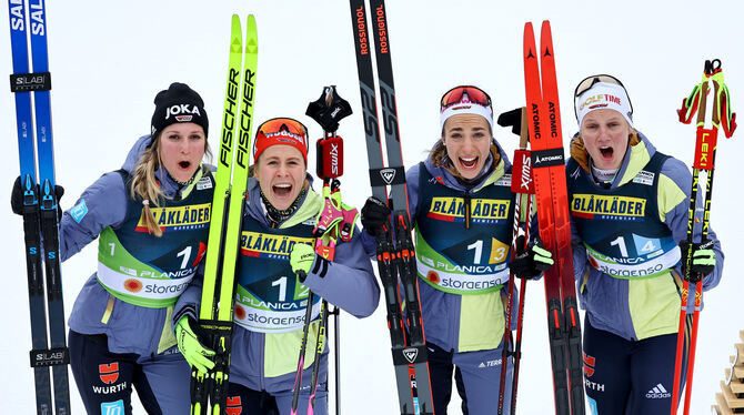 »Das ist immer der schwerste Part, so eine Leistung zu bestätigen«, sagte Hennig in der ARD. »Ich bin sehr, sehr stolz auf unsere Mannschaft.« Die 26-Jährige, Gimmler, Victoria Carl und Pia Fink aus Münsingen mussten sich am Donnerstag in Slowenien nur dem siegreichen Quartett aus Norwegen geschlagen geben.