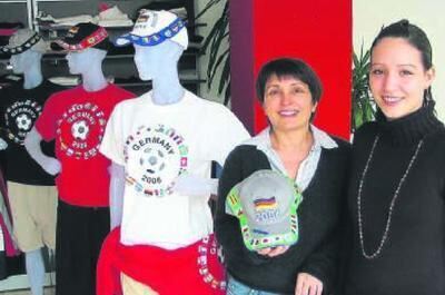 Satema-Geschäftsführerin Sadeta Löcklin präsentiert eine von ihr produzierte und vertriebene Schildmütze aus der patentierten WM-Kollektion. Rechts: Tochter Alina Löcklin.