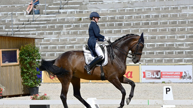 Die Donzdorferin Anna Casper feiert mit ihrer Stute Donna Clara in Marbach ihren ersten Grand-Prix-Sieg. FOTO: BAUR