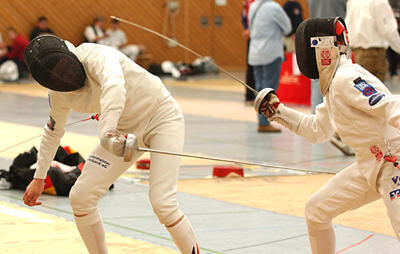 Eine Klasse für sich: Variantenreich setzt Stefan Rein (links) einen Treffer gegen Timo Romull.