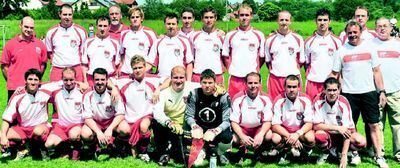 Nach der Saison 2000/01 stiegen die Sportfreunde Dußlingen aus der Tübinger A-Liga ab. Nun gelang mit dem neuen Trainer-Duo Wagner/Niggel in fulminanter Manier die Rückkehr. Hintere Reihe von links: Abteilungsleiter Simon Müller, Marc Schwille, Patrick Tschöpp, Harald Kunze, Manuel Diez, Spielertrainer Sascha Niggel, Marc Reichmann, Jens Schneider, Phillip Schwab, Frank Gaißer, Zahit Yesilöz, Klaus Schleicher, Spielertrainer Martin Wagner, Hans Gluns. Vordere Reihe von links: Martin Kocher, Pascal Kienle, Sven Niggel, Steffen Binder, Harald Knöpfler, Niels Carstensen, Dominic Kralj, Mario Huthmacher, Kai Mattes.