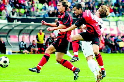Reutlingen in seiner besten Phase im Vorwärtsgang: Stanko Pavlovic zieht vor Teamkollege Lars Heller (links) ab.