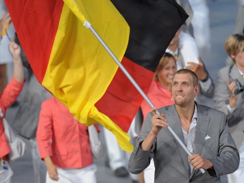 Dirk Nowitzki trug bei den Olympischen Spielen in Peking die deutsche Fahne. Foto: Bernd Thissen