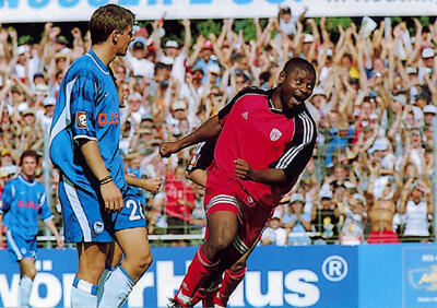 So war´s im August 200: Der damalige Berliner und heutige Münchner Sebastian Deisler staunt - und Olivier Djappa jubelt.