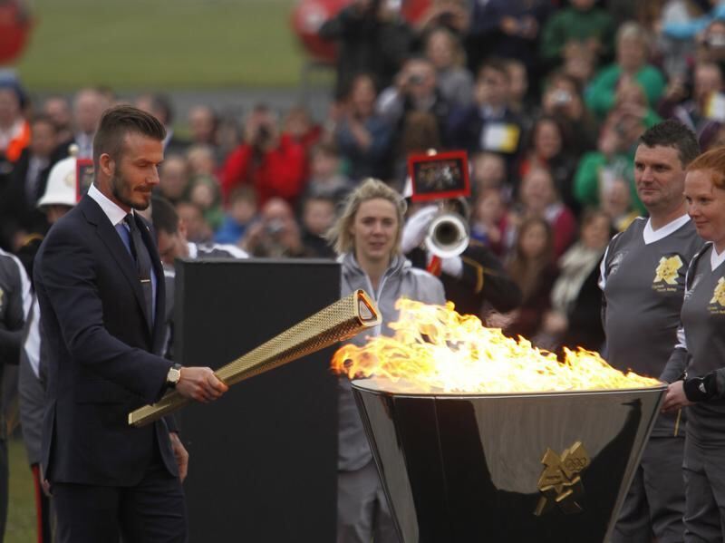Kein Geringerer als David Beckham entzündet in England die Fackel an der eingetroffenen Olympischen Flamme. Foto: Karel Prinsloo
