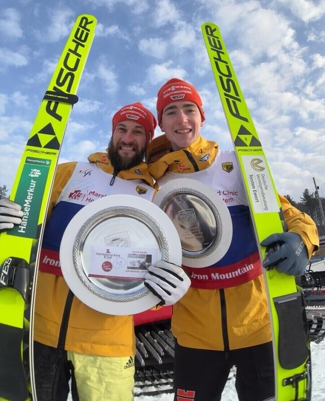 Platz drei im Continental Cup: Pfullinger Bayer jubelt mit Weltmeister Eisenbichler
