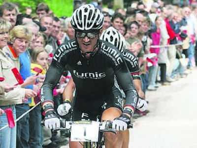 Windschattenfahren vor begeisterter Kulisse: Der neue deutsche Meister Lado Fumic vor seinem jüngeren Bruder Manuel, der in Albstadt Zweiter wurde.