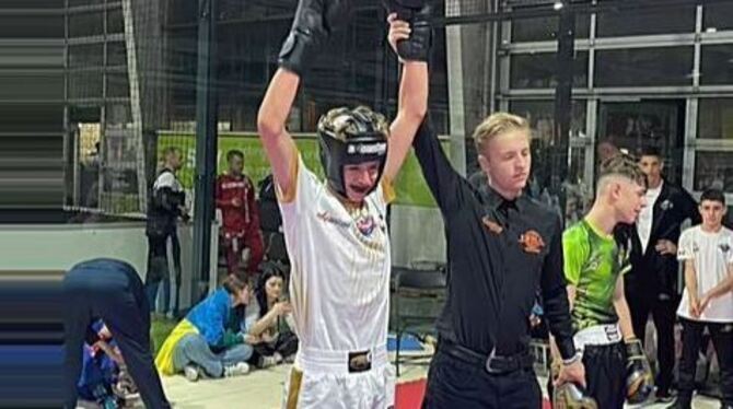 MÜNCHEN. Kickboxer Rafael Ressler von der TSG Reutlingen hat den bisher größten Erfolg in seiner noch jungen Karriere gefeiert. Der 14 Jahre alte Reutlinger krönte sich am Wochenende bei der Weltmeisterschaft des Verbandes ISKA in München zum weltweiten Kickbox-Champion bei den 12- bis 14-Jährigen in der Klasse bis 60 Kilogramm. Im Viertelfinale bezwang Ressler einen Schotten, im Halbfinale ging es gegen einen Gegner aus Armenien und im Finale setzte sich der TSG-Athlet schließlich gegen einen Rumänen durch. Der 14 Jahre alte Rafael Ressler wird von seinem Bruder Daniel trainiert. (GEA)