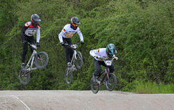 KORNWESTHEIM. Er hat's wieder geschafft! BMX-Fahrer Marco Jäckel vom TSV Betzingen hat sich bei den Bundesliga-Finalläufen in Kornwestheim zum Gesamtsieger gekrönt. Jäckel gewann am Samstag alle Läufe souverän vom Start bis ins Ziel. Auch am Sonntag krönte er sich zum Sieger in drei Läufen – inklusive eines Bahnrekords. Damit beendete der Reutlinger die Bundesliga-Rennserie wie im Vorjahr als Führender. Neben ihm ging mit Christian Borchert ein weiterer Betzinger Fahrer in der höchsten Kategorie, der Elite Man, an den Start. Borchert ließ erneut seine Klasse aufblitzen und zeigte mit den Plätzen sieben und sechs, dass mit ihm zu rechnen ist. Marco Jäckels Bruder David, der für den RV Gomaringen fährt, startete nach einer Verletzungspause eine Aufholjagd und stand am Ende des ersten Tages auf dem zweiten Rang. Auch am Sonntag stand er seinem Bruder in nichts nach und gewann in der Klasse Man 17-29 das Finale und krönte sich zum Sieger. Am Wochenende stehen die Süddeutschen Meisterschaften an. (GEA)