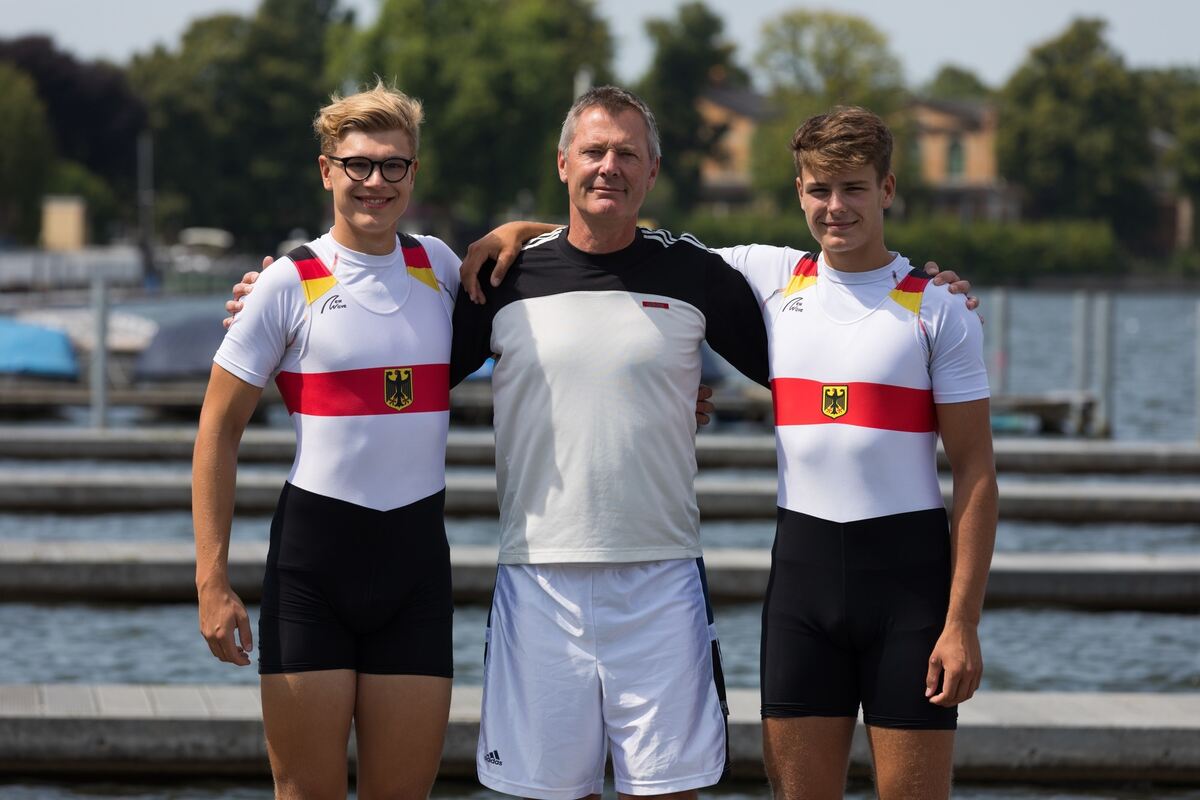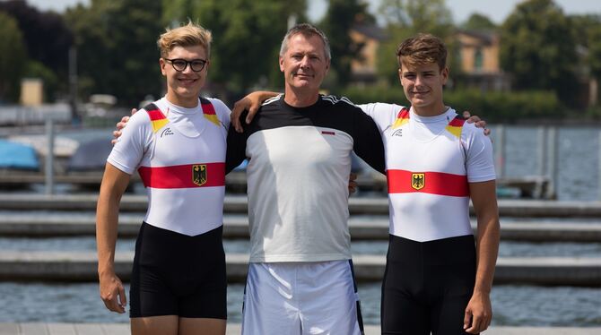 Für die Junioren-WM startklar (von links): Der Tübinger Elias Kun, Trainer Stephan Gutbrod und Jasper Angl.