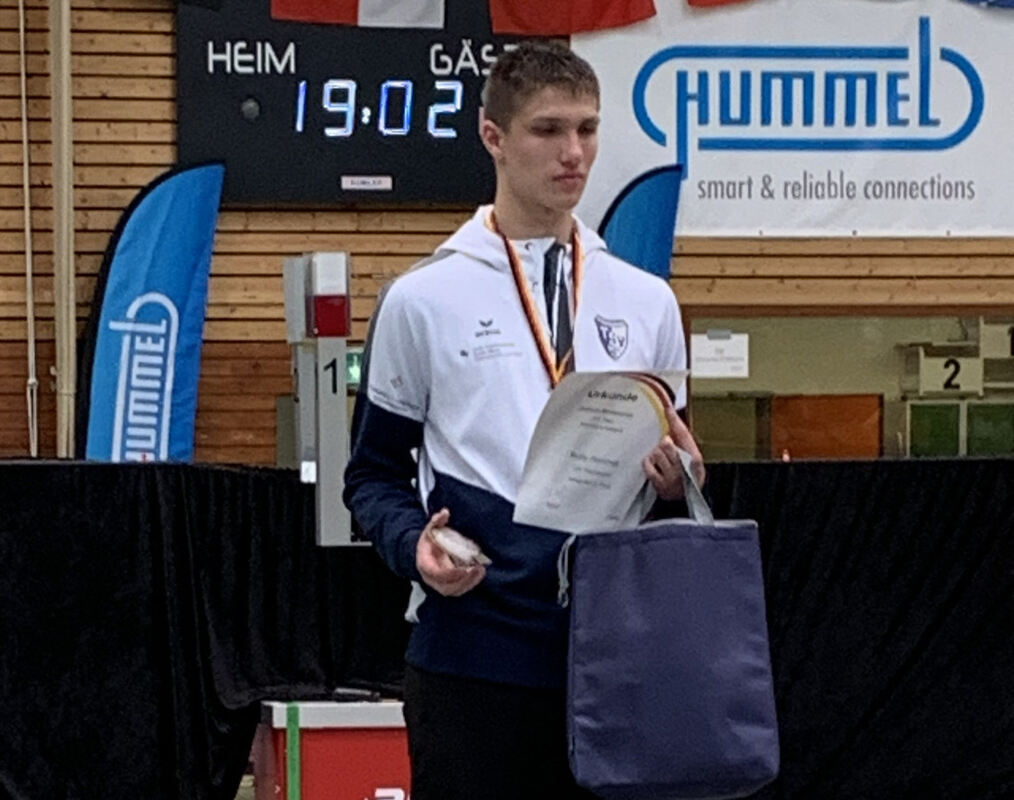 PLIEZHAUSEN. Großer Erfolg für Rudy Hummel. Der Degenfechter des TSV Pliezhausen wurde bei den deutschen Meisterschaften der Altersklasse U 15 Zweiter. Nachdem er zuletzt die Allstar Deutschland Challenge in Leverkusen gewann, wurde Hummel vor den »Deutschen« als Mitfavorit gehandelt. Er schaffte es ungeschlagen und souverän bis ins Finale, wo er sich Levi Deng (Frankfurt) geschlagen geben musste. Mit dem württembergischen Team wurde Hummel Dritter. Celina Ganz imponierte mit Platz zwölf und im Team-Wettbewerb mit Rang sechs. Leon Börner schaffte den Einzug in die K.o.-Runde, Julia Zinsmeister und Léonie Marie Beer (alle TSV Pliezhausen) schieden in der Vorrunde aus. (GEA)