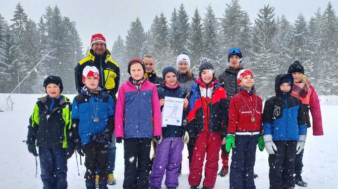 Silber sicherte sich Nico Füllemann (U 16), der 7,5 Kilometer zurücklegte. Dritte Ränge in der klassischen Technik gewannen Rune Komel (U10) und Matthias Etzel bei den Männern, der auf der 10-Kilometer-Strecke im Einsatz war. Marlene Herrmann (U 11) belegte ebenso wie Ida Heidelmeyer (U 16) Platz vier, Luis Füllemann (U 18) wurde über 7,5 Kilomter Fünfter, Lukas Herrmann (U 8) kam auf Rang sechs. Im Teamsprint gab es Silber für Simon Bächtle/Nico Füllemann (U 16) sowie Luna Röcker/Marlene Herrmann (U 10/11). In der U 16-Klasse freuten sich Talitha Etzel/Ida Heidelmeyer über Rang drei. Lukas Herrmann/Tim Greiner (U 8/9) wurden Vierter, das gemischte Team mit Lilli Greiner/Lias Röcker (U 10/11) Fünfter. (GEA)