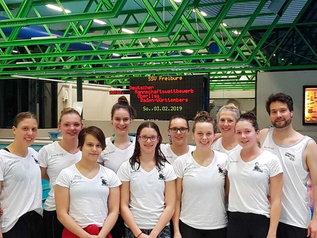 Die Frauen der SSG Reutlingen/Tübingen steigen in die 2. Bundesliga auf. Hintere Reihe von links: Karolin Schwille, Antonia-Paulina Hergel, Vanessa Haselmeier, Laura Kienast, Susan Jehne, Trainer Ephraim Singer; vordere Reihe von links: Katja Brand, Nina Löffler, Luca Braun, Paula Sterr. FOTO: VEREIN