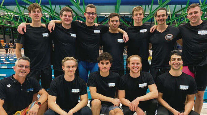 FREIBURG. Feiner Erfolg für die SSG Reutlingen/Tübingen. Das Männer-Team schaffte bei den deutschen Mannschaftsmeisterschaften (DMS) der Schwimmer den Verbleib in der 2. Liga. Das SSG-Team belegte – wie im Vorjahr – den sechsten Platz in der Süd-Staffel der 2. Liga. 20.289 Punkte standen am Ende auf dem Konto der Reutlinger/Tübinger. Damit ließ die SSG sechs Mannschaften hinter sich, die allesamt unter der 20.000er-Marke blieben. Meister wurde die SG Mittelfranken (22.387). Wenn man alle drei 2. Ligen zusammenfasst, belegt die SSG den zwölften Platz in dem 36er-Feld. Von den elf Schwimmern der SSG absolvierten Leon Fischer und Patrick Perez jeweils fünf Starts, die Höchstzahl für einen Athleten. Die höchste Einzelpunktzahl erzielte Brust-Spezialist Wolfgang Maier. Seine 1:02,32 Minuten über 100 Meter bedeuteten 697 Zähler. Die beste Marke von Fischer waren 679 Punkte (54,98 Sekunden über 100 Meter Rücken). 679 Zähler heimste auch Hannes Kaufmann ein (24,70 über 50 Meter Schmetterling).